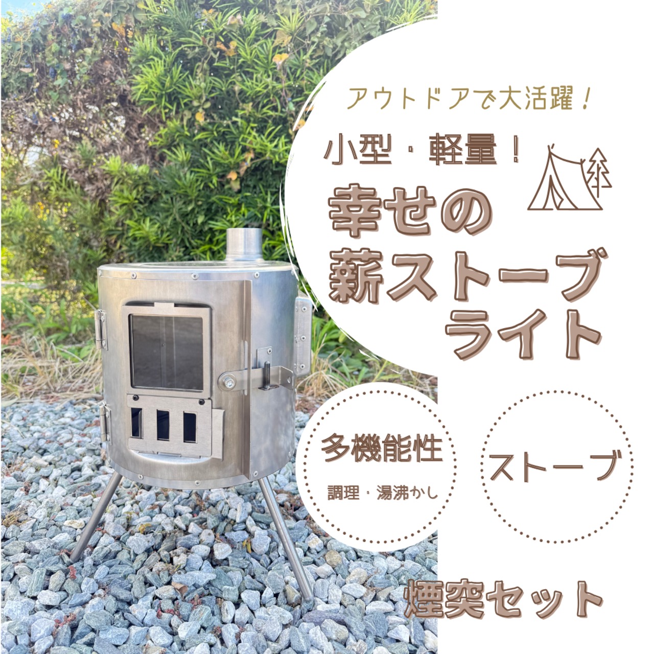 【小型・軽量】幸せの薪ストーブライト / アウトドア⽤薪ストーブ(煙筒付き)